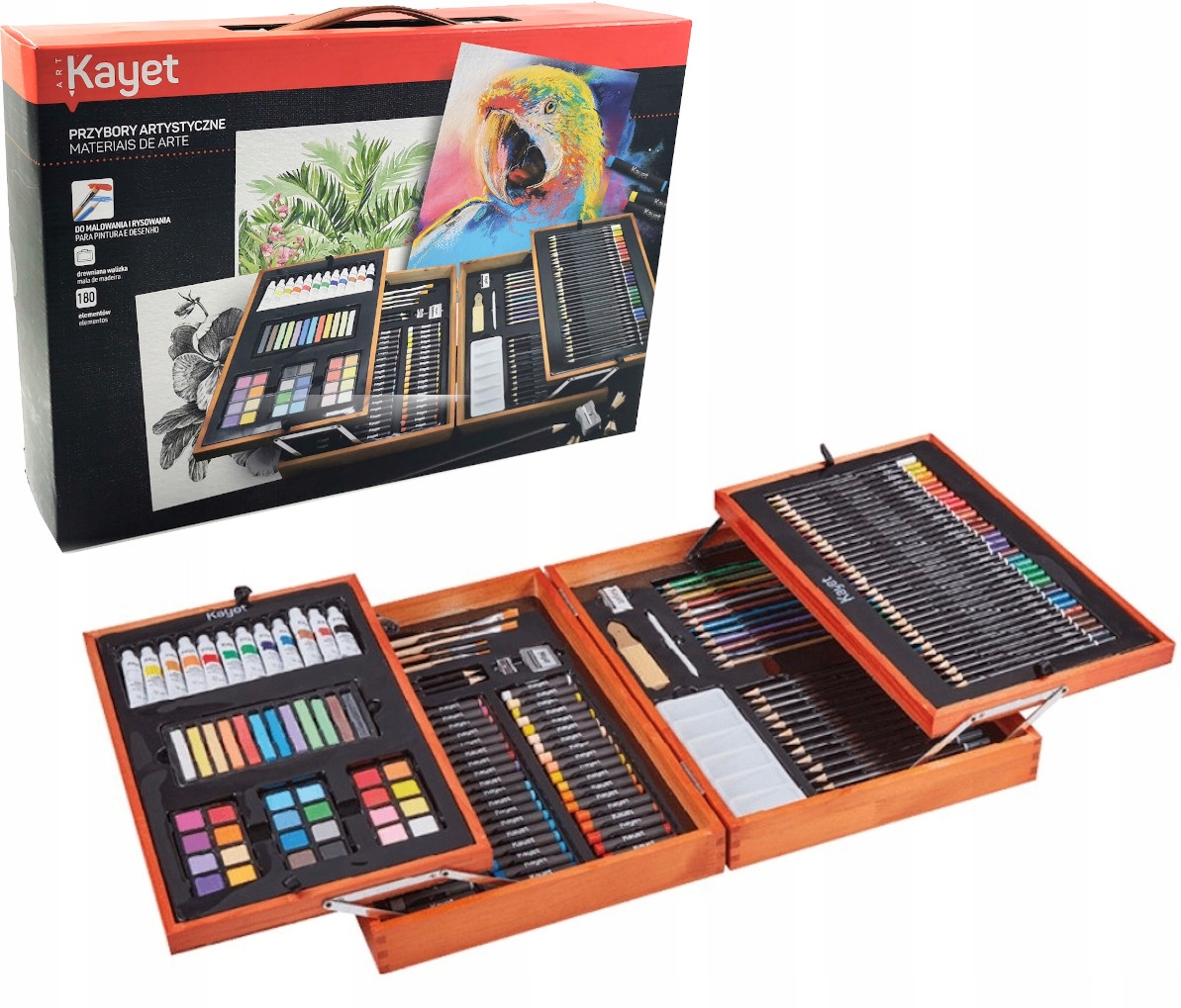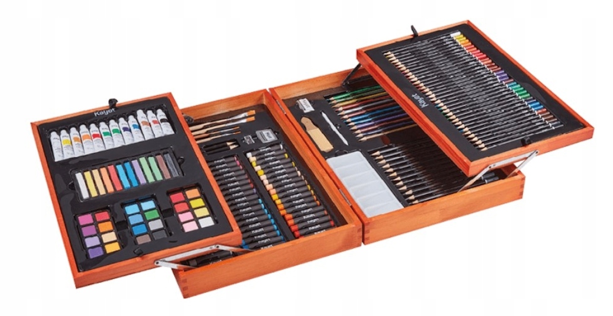 320890 ZESTAW ARTYSTYCZNY SZKOLNY DREWNIANA WALIZKA 180EL