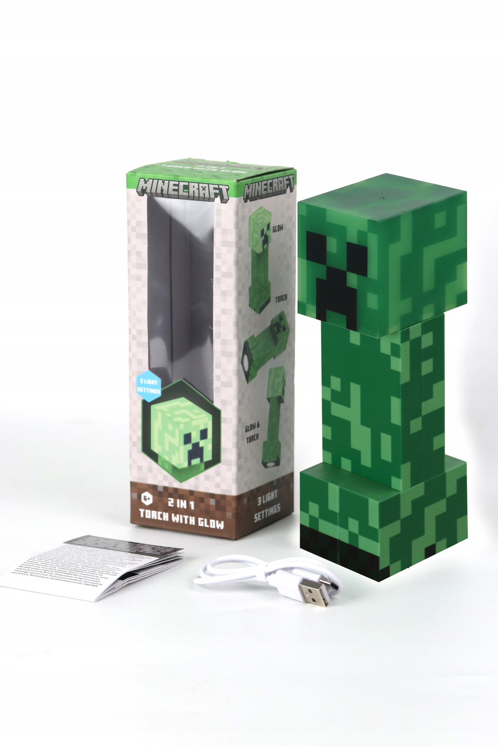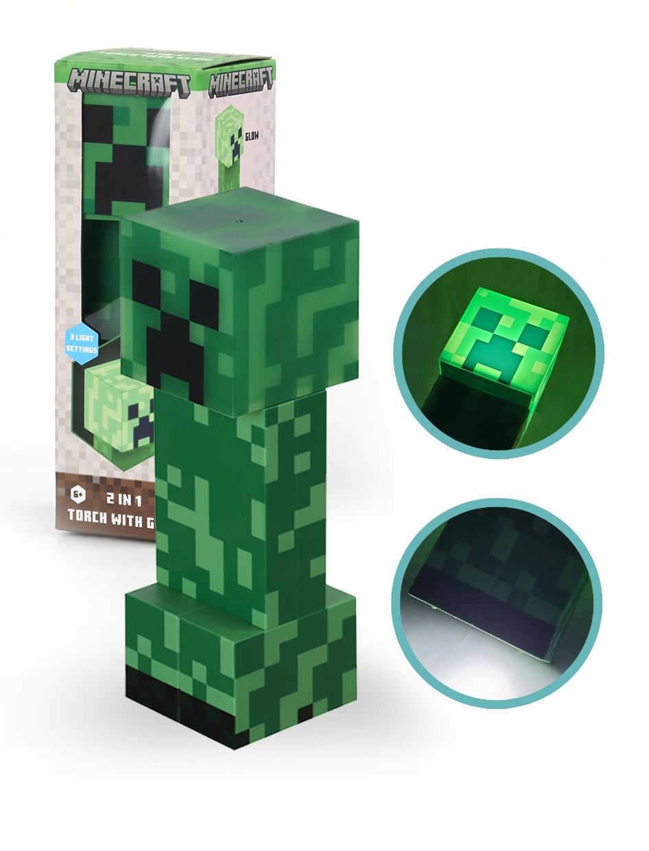 ▶️ Latarka z lampką nocną Minecraft Creeper 18 cm