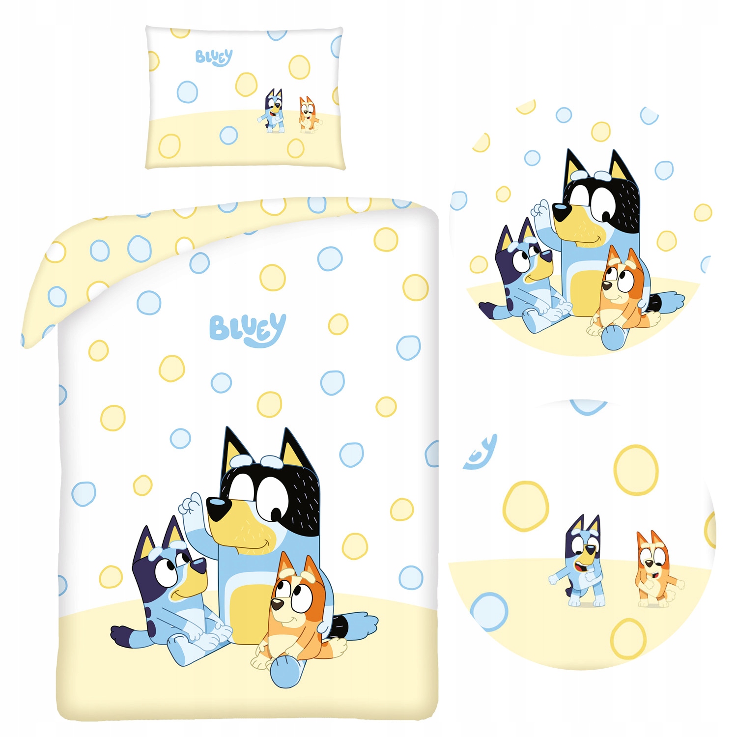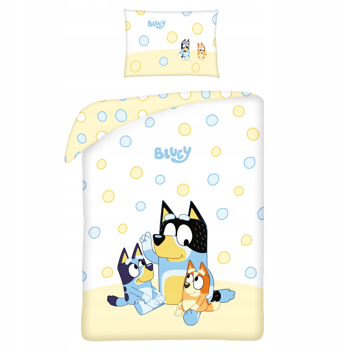 Dwustronna pościel do łóżeczka z pieskiem Bluey, tworzy przyjazne otoczenie zapewniając dziecku poczucie bezpieczeństwa.