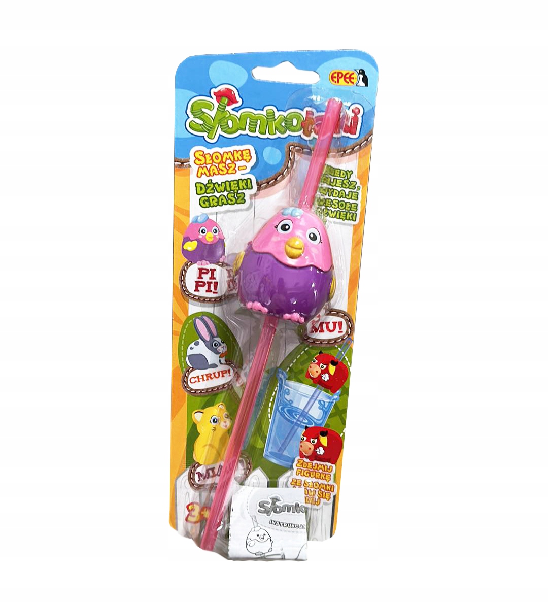 Figurki umieszczone na słomce reagują na przepływający płyn, wydając wesołe dźwięki, np. miauczenie kotka lub muczenie krówki.